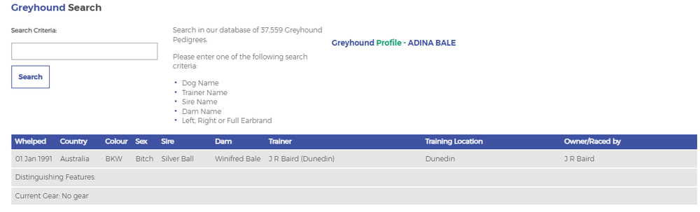 GRNZ told Govt that they had confidence in the integrity of their database & the status of all the dogs within it. I don't have confidence in it (nor should the Govt), as their database has a 34-year-old dog that appears to still be registered to race.