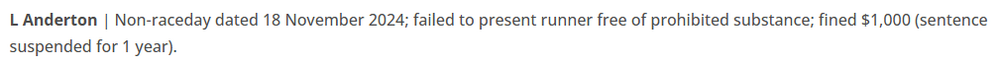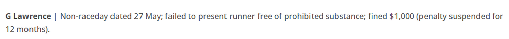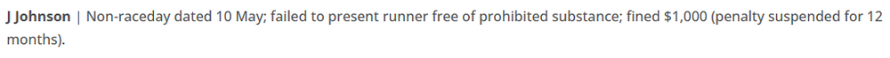 That's been my opinion forever, far to many years (and reviews) of being all words and only reactive. Just as guilty are the RIU/JCA, now the RIB. People are going to do what they do. If they do something that is out of line, they should be held to account. If the rules are ignored for some participants & not others, then it's an issue. If one trainer gets fined for an Arsenic positive swab & another under the exact same circumstances (chewing on treated timber) gets a fine but has it fully suspended for one year, then it's an issue.