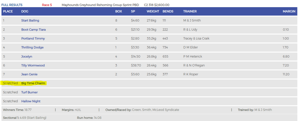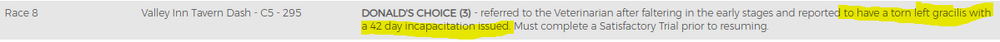 Not true. The #1, 3 & 4 all had rather sever interference in the race a month ago. The #1 even made contact with the rail. Yet no mention of the incident in the Stewards report and no dogs were vetted after the race. Link to full replay