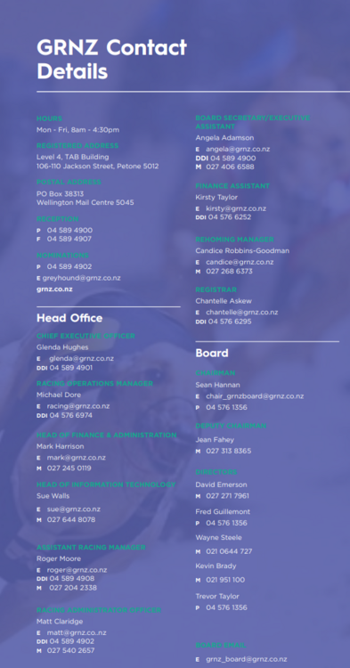 Wasn't that long ago & Govt put GRNZ on final notice. So, what has GRNZ done about it? Well, Grant Robertson won't be looking favorably on this - On Trace magazine claims GRNZ doesn't even have a welfare manager! https://www.grnz.co.nz/Files/On Track Magazine/February OnTrack Magazine Single page version.pdf I won't inform Grant, just yet.