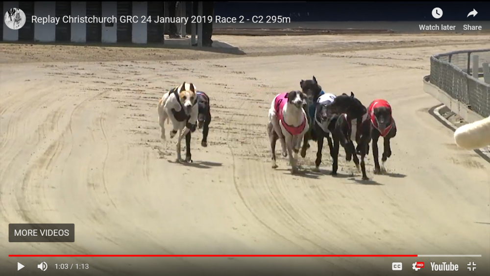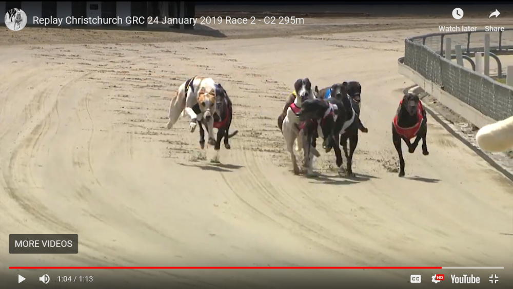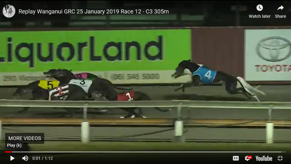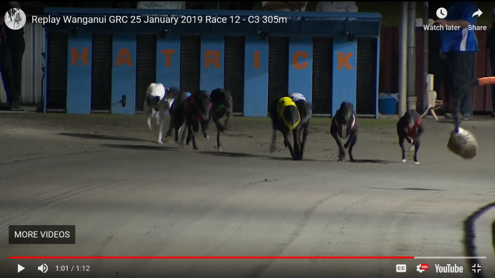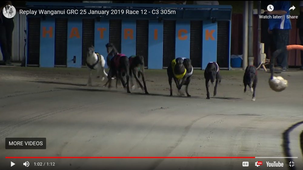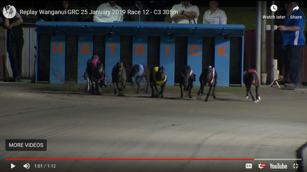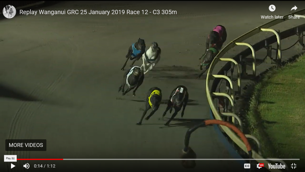 12. Replay not yet available... Stewards report is... https://www.grnz.co.nz/catch-the-action/13395/stewards-report.aspx BLAZIN' AUDREY (5) - contact for a distance after the start. Shifted off heels first turn. Turned head inwards in the final straight and shifted in making solid contact with TALKABOUT MISSY for a distance with both runners becoming unbalanced. Veterinary examination revealed grazes on all four legs with a 5 day stand down imposed. Subsequently stood down for 3 months and the completion of a satisfactory trial under Rule 55.1b failing to pursue the lure 2nd offence.