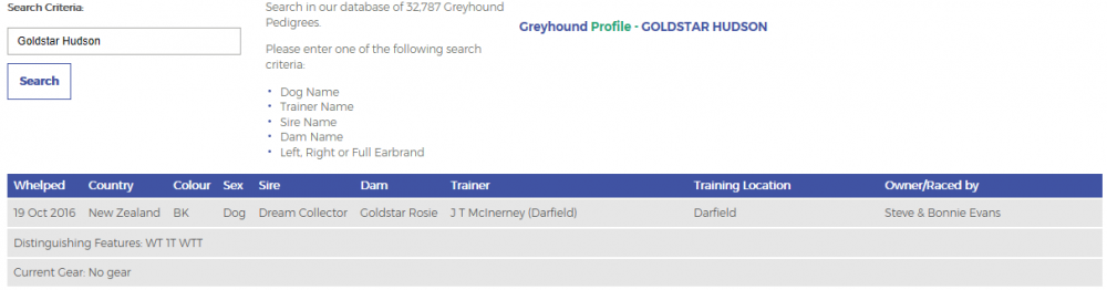 Still registered to race, therefore GRNZ hasn't received a death or re-homed certificate. Maybe he'll be turning up the Stud list! The same can be said (for now) about Goldstar Hudson.