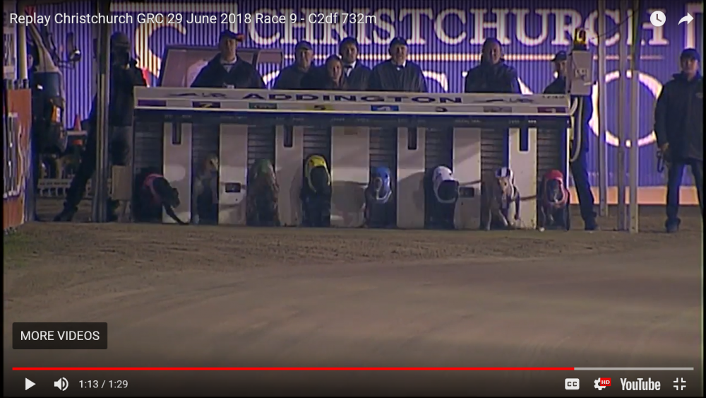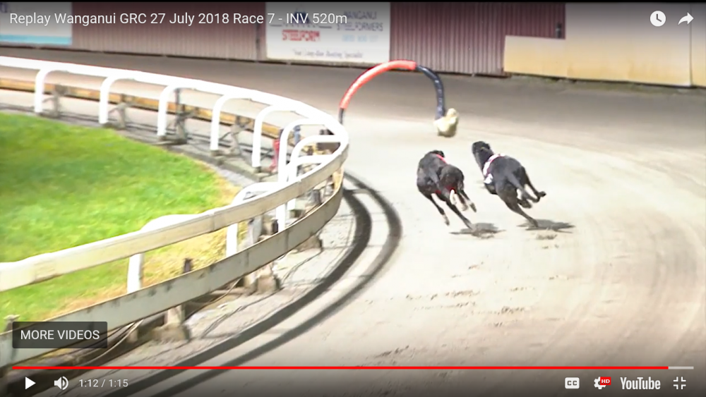 Currently the GRNZ has only the first of four heats available in their replays. From what I see, I think Craig maybe have been hard done by... 51.1 The Lure shall be controlled so as to be positioned at all times during the running of a Race at a distance of not less than 5 metres and no greater than 8 metres ahead of the leading Greyhound. However, the Steward(s) may permit a variance to such distance if he/she/they is/are satisfied that as a consequence of such variance no Greyhound has been substantially inconvenienced in running so as to affect the outcome of the Race. This sure doesn't look like 5 to 8 meters in the first corner of heat #1.... It'll be interesting to compare the distance in the other heats once they are available.