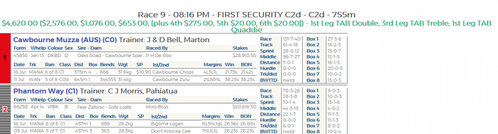 What's even more surprising to me is that it's a C2D race. Of the eight entrants, two are C1 & six are C0... Eight dogs with two distance wins in total between them all & racing in the top grade for top grade stakes... I understand a new monument is being erected outside the GRNZ headquarters.