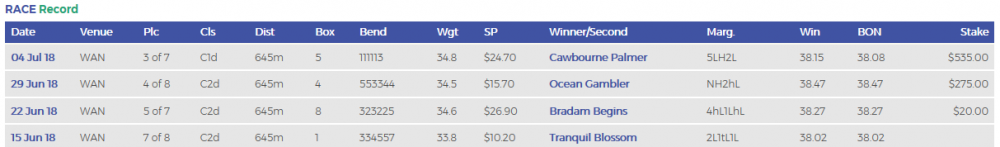 97 official wins on the board. 1 DQ (win) on the board as well after having Ketoprofen detected in his system. http://www.jca.org.nz/non-race-day-hearings/non-raceday-inquiry-riu-v-j-t-mcinerney-reserved-decision-on-penalty-dated-13-july-2017-chair-mr-r-g-mckenzie A really great performer, who has done a lot for the industry, in more ways than one.