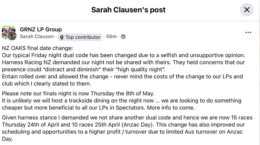 BitofaLegend Posted April 20 Posted April 20 On 13/04/2025 at 11:47 AM, kizanan said: What are you even on about? The only board looking for new members is On Track. Let me guess... you heard this "around the traps". Heard from a trainer. Turned out theyd heard wrong yes. Still. Theyd be better of resigning. 5 mths later and nothing done at all - GRNZ still havent tried to get the public on board at all, just raising stakes for trainers. Planning a "legal" challenge against something thats legal for govt to do is beyond stupid and holds no weight at all. Bigger industries have been made illegal in the past. May aswell just say the industries over amd time for everyone to either move to aus or retire from racing. Quote