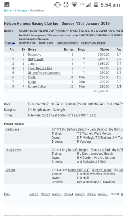 Flagship uberalles Posted January 23, 2019 Posted January 23, 2019 9 minutes ago, Brodie said: Yes he would’ve been one of the first, if not the first! He ran in at least one NZ Cup when the fields were even and decent! Won at Westport, Reefton and then Greymouth. They closed Greymouth and then you had to win at Westport both days and then Reefton I beleive, then they canned the bonus for some reason! Yes our mana 2nz cup seconds and one Auckland cup 2nd, I remember when he and Derby were coming through and Derby beat him in the flying stakes, I think Derby had won 8 from 8 I thought Derby would kick on and become a super star, but our mana turned out much better. Quote